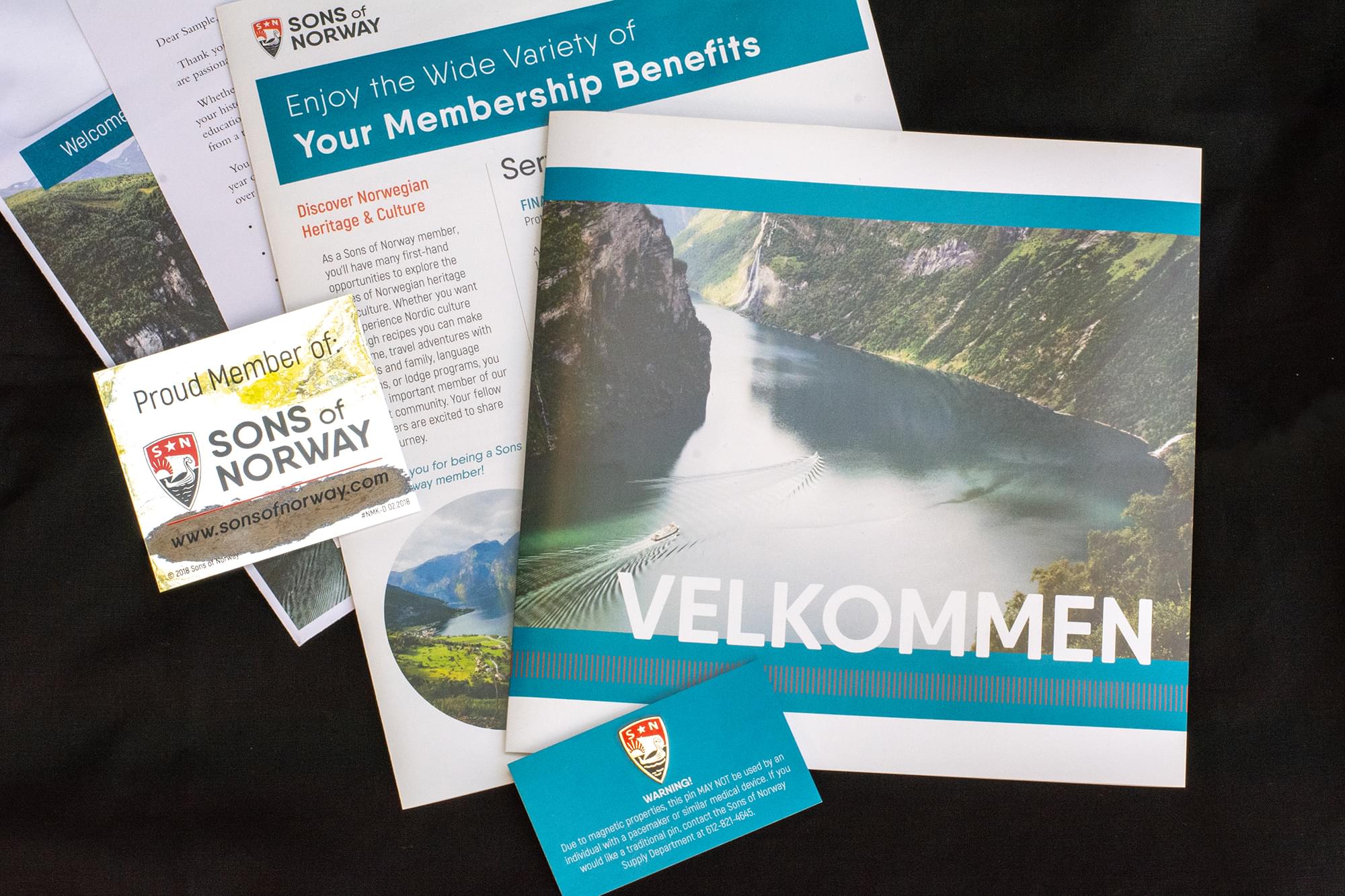 Show your status as a member with your personalized ID card, Sons of Norway decal, and beautiful 14 karat gold finished pin included in your new member welcome package.